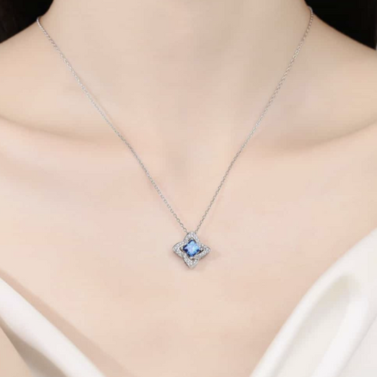 Blue Moissanite 1 CT Celtic Floral Pendant Necklace wtih Zircon Accents
