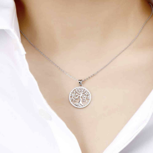 Sterling Silver Moissanite Circle Tree Pendant Necklace