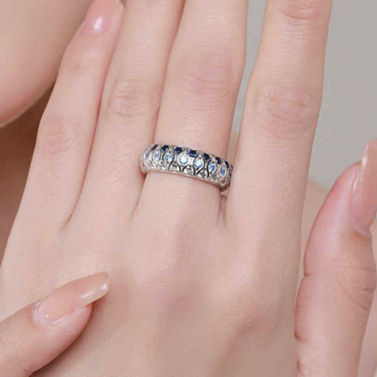 Sterling Silver Triple Row Blue Zircon Band