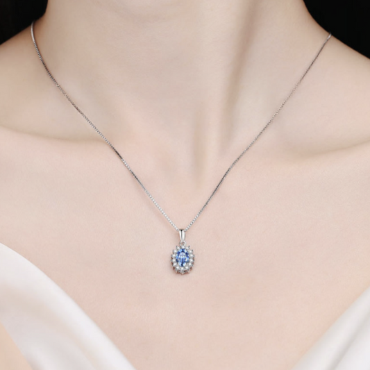 Azure Sparkle Blue Oval 1 CT Moissanite Necklace with Zircon Accents