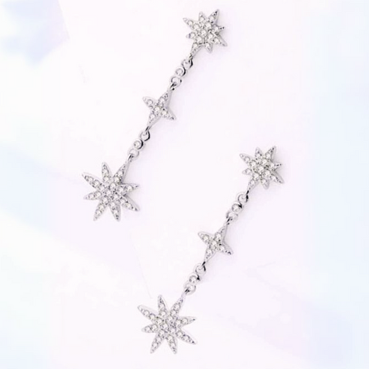 Celestial Stars Silver Drop Earrings with Zircon Accents