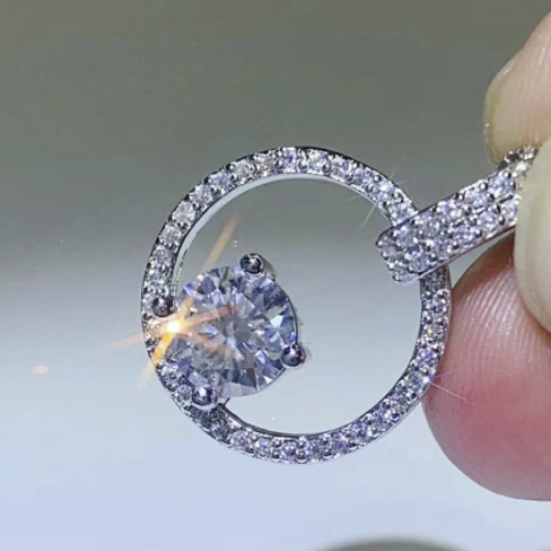 Timeless Moissanite Circle Necklace. Sterling Silver 1 CT Moissanite