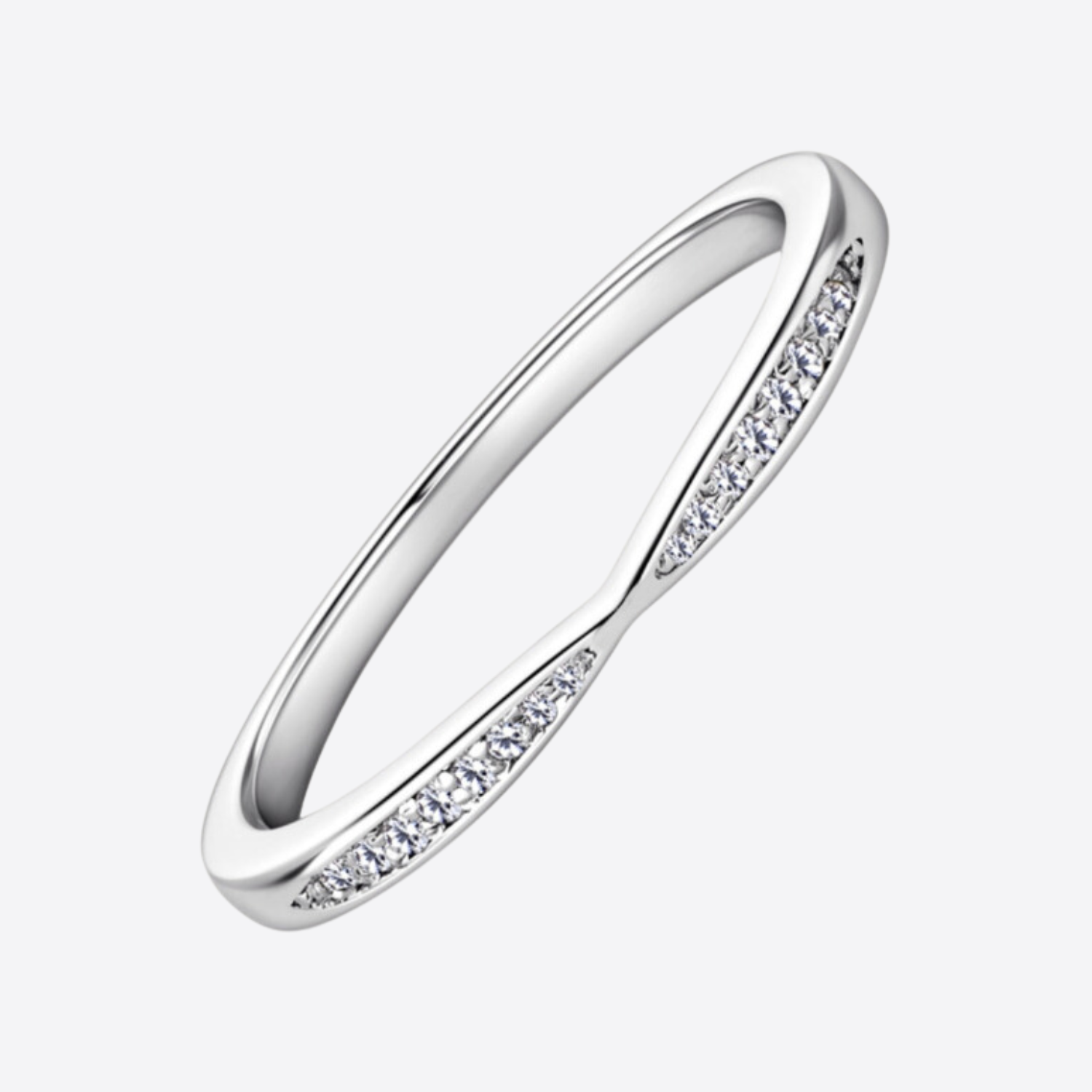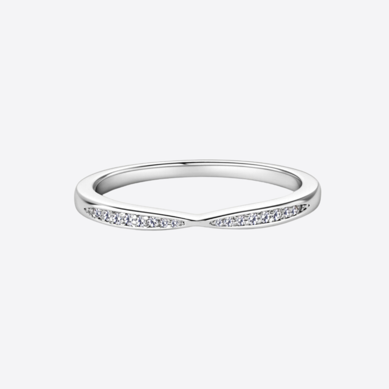 Discover elegance and versatility with our sterling silver Inlaid Moissanite Pinch Notched Wedding Band. With a sleek design and inlaid moissanite stones, this ring adds sparkle to any ensemble. Perfect as a wedding band or for stacking, it offers understated charm and timeless style.