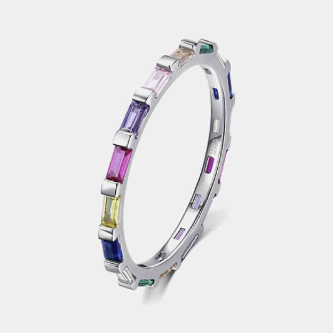 - Adorn your fingers in a spectrum of rainbow brilliance with our Sterling Silver Multi-Color Zircon Band. This vibrant and versatile band features an array of colorful zircon stones, adding a touch of playful elegance to your ensemble.