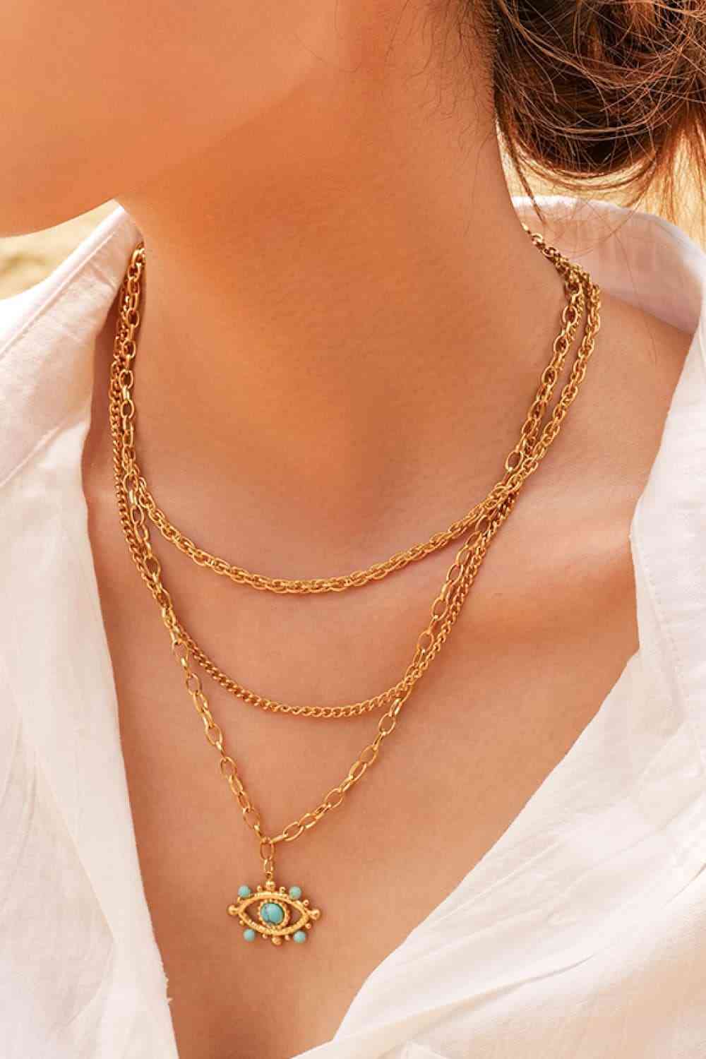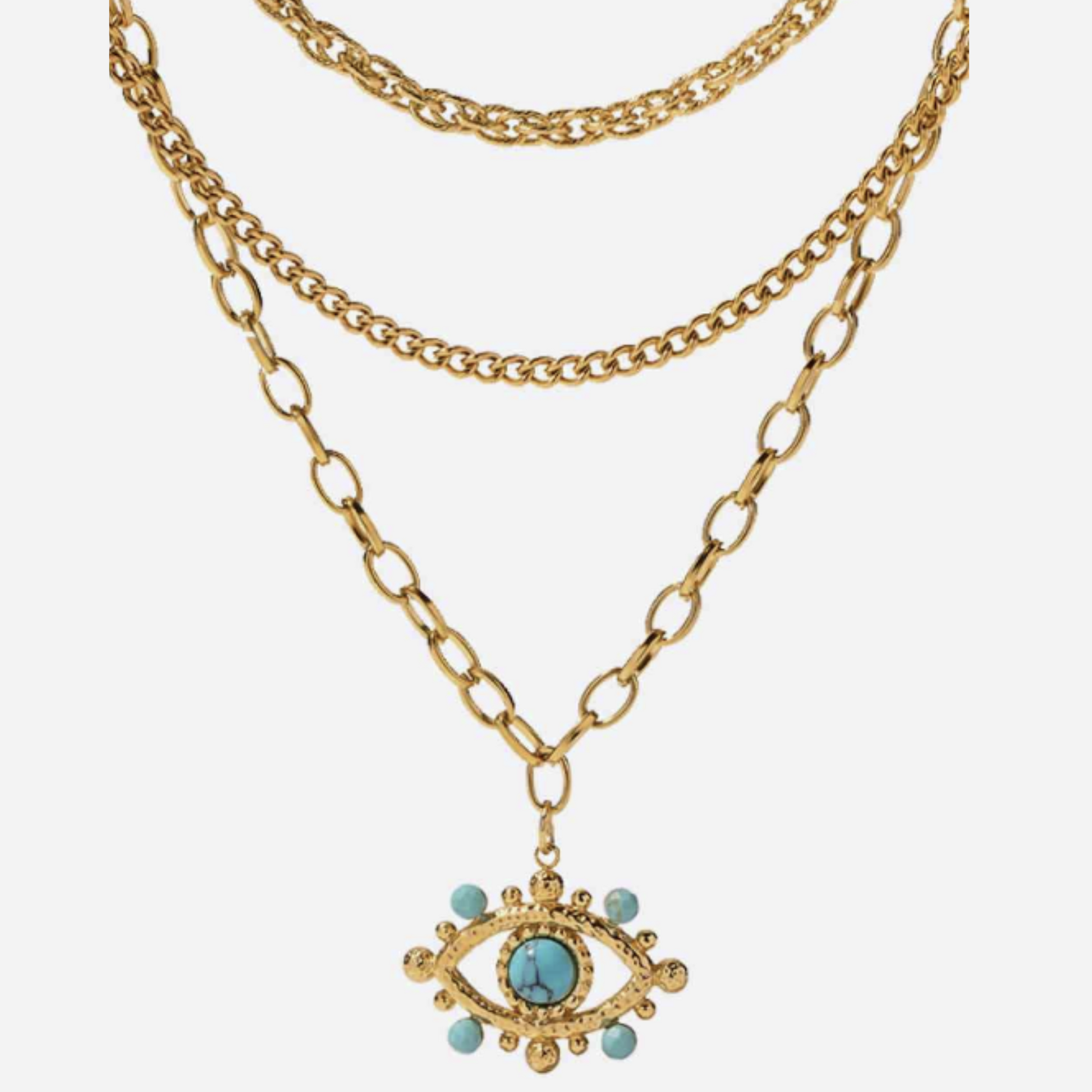 Turquoise Evil Eye Triple Multi-Strand Layered Pendant Necklace